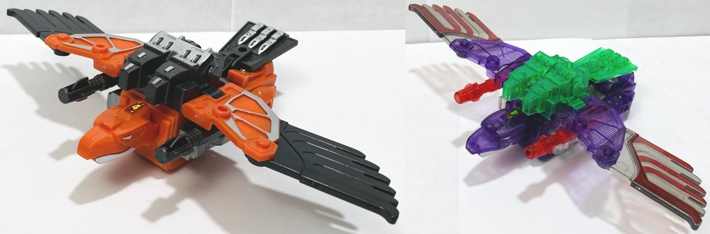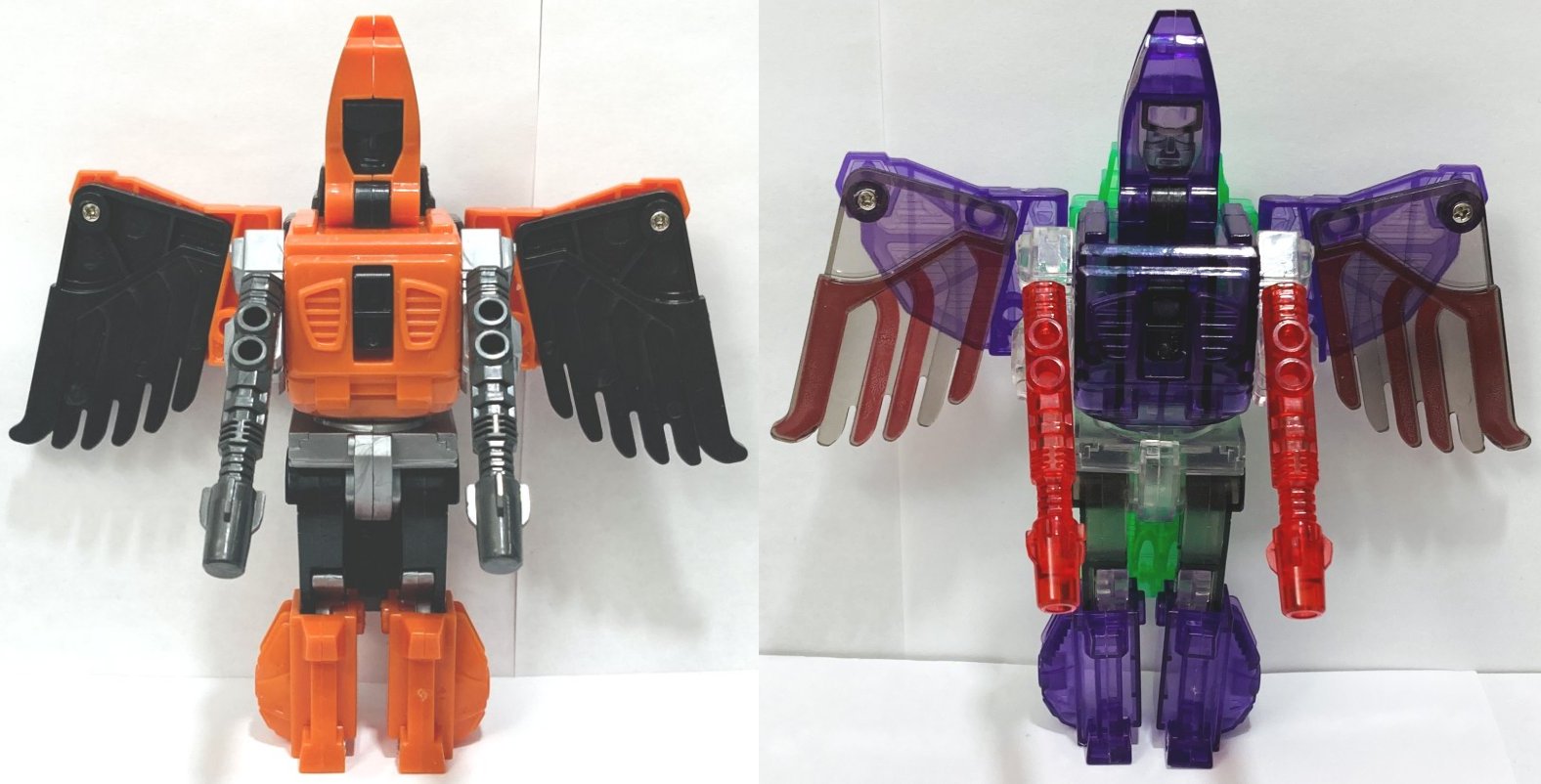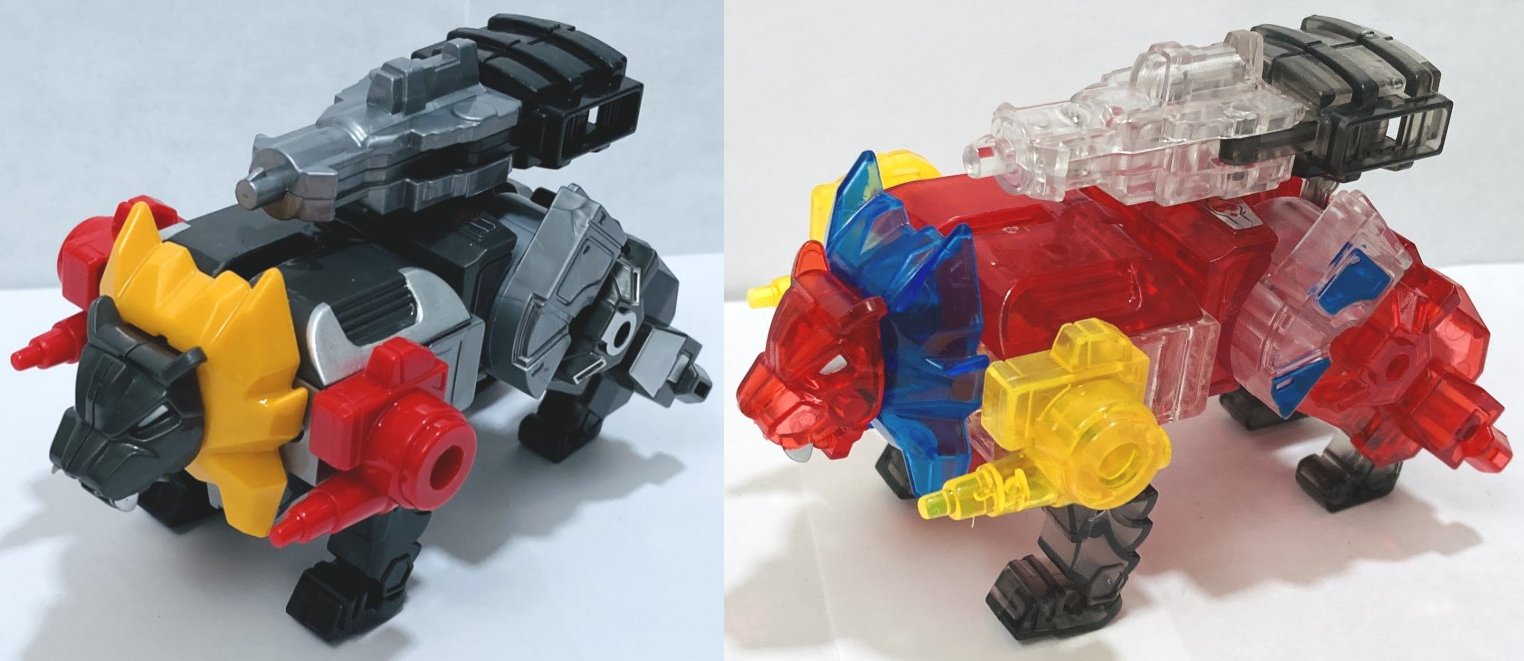 With the proliferation of third party toys the line between a knockoff and a third party toy have blurred, at least they have for me. It would be fair to call this a knockoff or a modified knockoff since it’s not an exact reproduction of the G1 toy, but I consider this third party (especially as many third party toys are now being knocked off). I have both an opaque set and a translucent set, the latter of which would fit in perfectly with G1 toys. The molds have been simplified and he’s quite a bit smaller than a G1 Predaking.