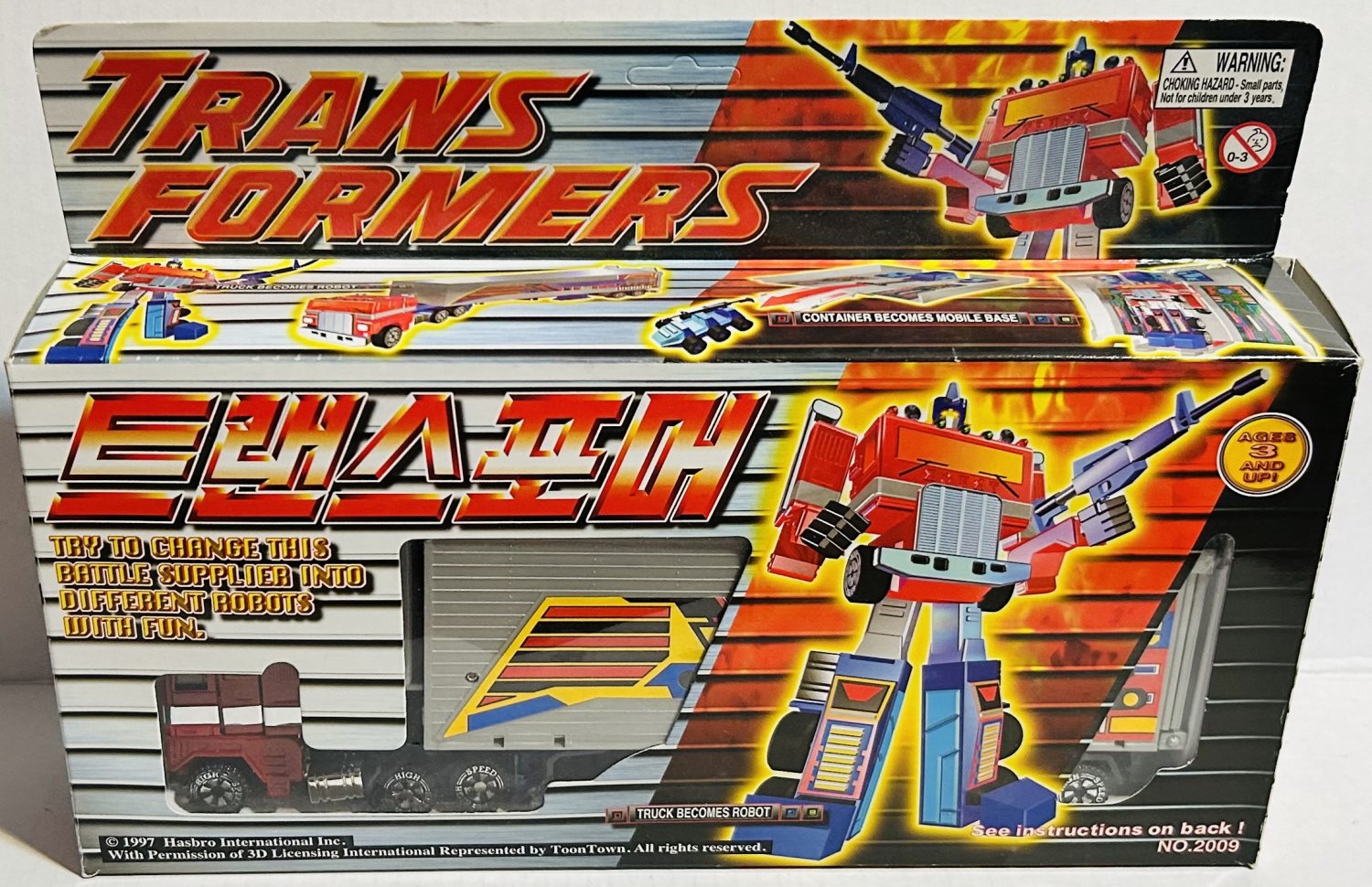 The writing on the box appears to be Korean, but I’m not expert. It says “1997 Hasbro International, Inc.” which suggests it could be a legitimate item, not a knockoff. It also says “With Permission of 3D Licensing International Represented by ToonTown.” I have a number of Korean Transformers items from the G2 era that all say they are made by ToonTown. Those items are licensed, so adds to the likelihood that this is a licensed toy.