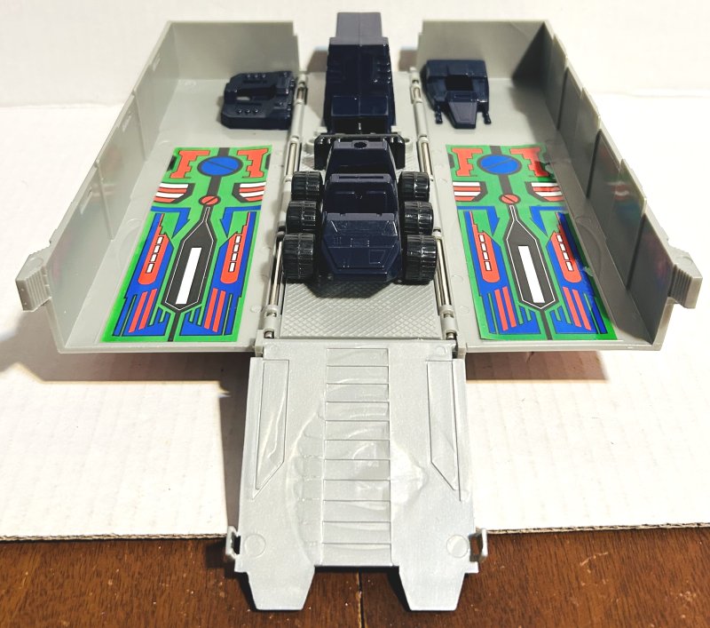 His trailer is simplified, lacking the arm with cockpit and missile launchers as well as the radar dish and arm.