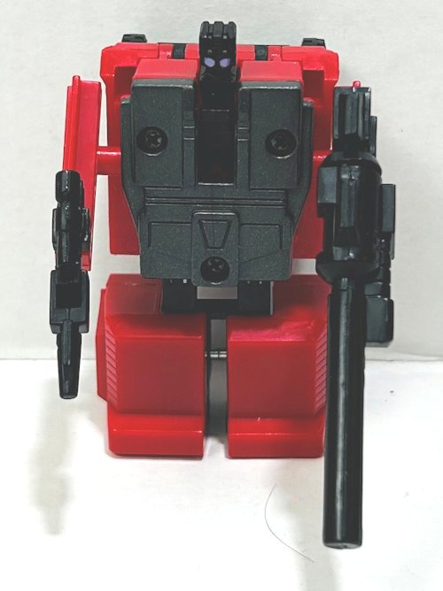 First thing to note is that his gun is the wrong color. It’s a reproduction. It’s supposed to be gray. At some point Zabgoth is going to paint it for me. There are two photos of him with his guns, the first was taken before the repro stickers (as was the one with the gun) the second he has his new stickers. He is an absolutely beautiful toy. I love his colors. Here are a few more pics of the team.