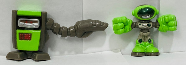 Fast-Bot is a formula one racecar. Primarily in yellow and gray with red paint apps, he does not actually have hands at least not that are recognizable as such. He also doesn’t really have a head, just a molded face.