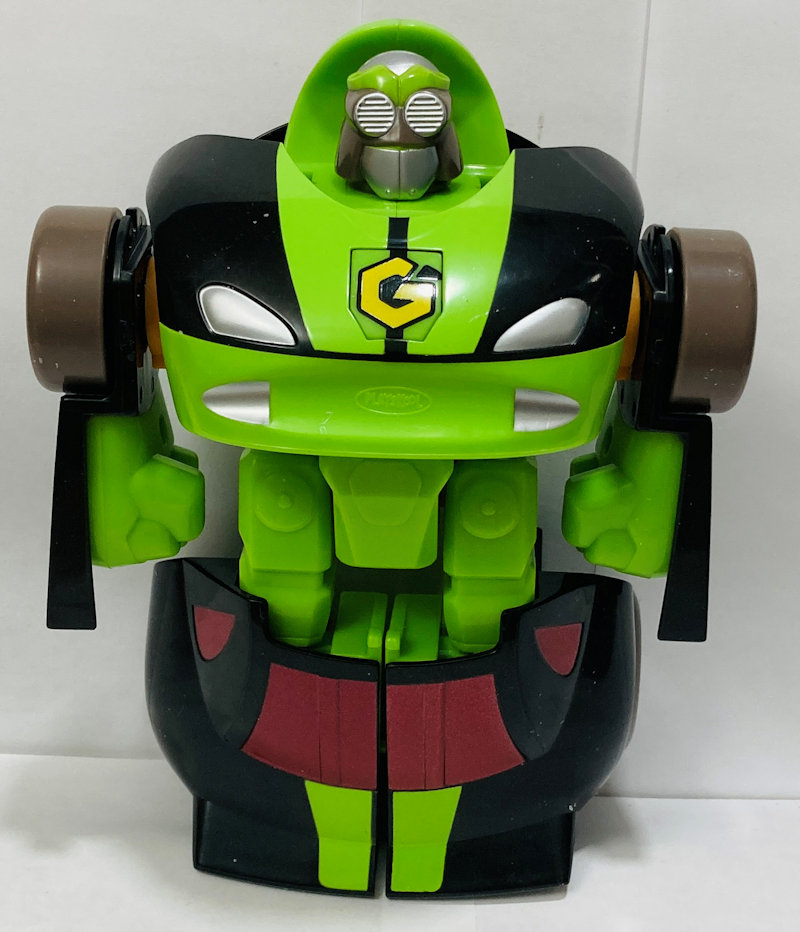 Mototron looks great in black and green. I love his racecar mode. His face sculpt has giant eyes like a lot of the Go-Bots.