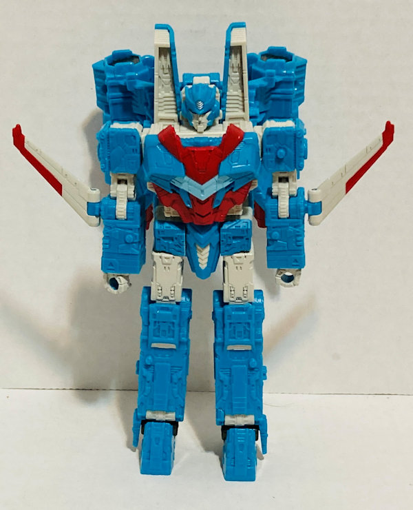 So, the color scheme makes it look like an Optimus Prime/Orion Pax. It doesn’t really do anything for me. I hate that face sculpt. I know the mouth is correct for Orion Pax, but I still hate it.