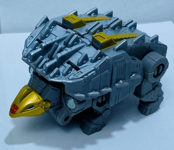 Scarr is an IDW creation. If I ignore that, his ankylosaurus mode looks fine considering the small scale. In robot mode he is a brick with a head.