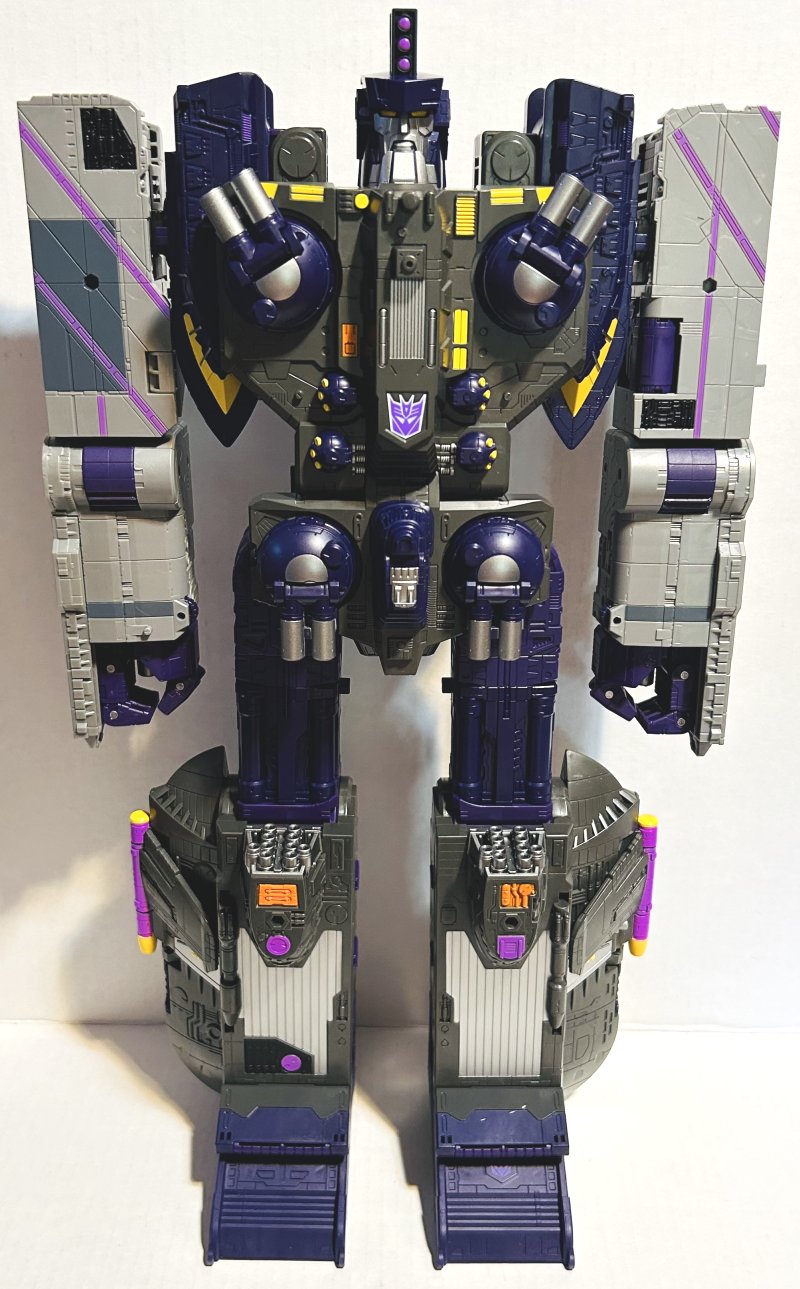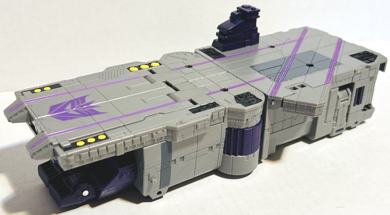Separate Vehicle Modes: Tidal Wave separates into Dark Fleet, consisting of an aircraft carrier, a landing craft, and a battleship. I rather like the aircraft carrier and battleship, but the landing craft has a significant design flaw. The two halves don’t connect together well. They fall apart if you look at them funny. The connectors just aren’t enough to hold the two sides together.