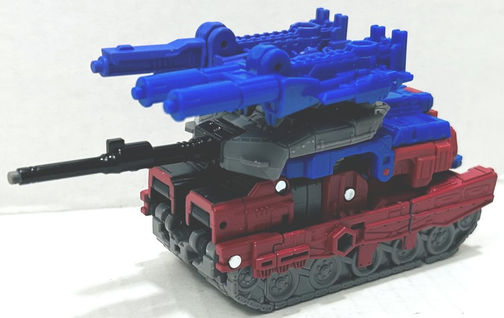 Quake looks fantastic in robot mode. He could have used a few more paint apps, but I love his head sculpt. In tank mode, yikes. It’s like he’s the base of a tank with a bunch of crap piled on top and a turret on top of that. It’s not pretty.