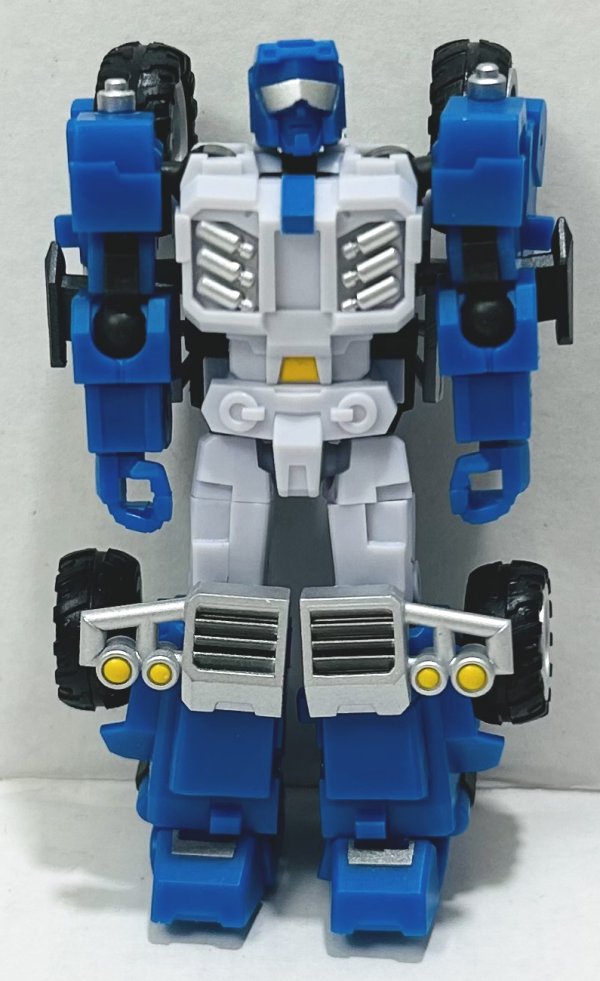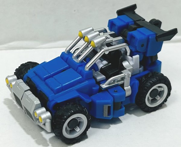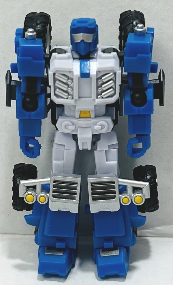 Beachcomber looks fantastic in vehicle mode. I love the silver paint on his grill and roll cage and the painted headlights and floodlights. In robot mode he looks just as good with more silver paint on his chest and visor. He comes with an animation and toy head sculpt.