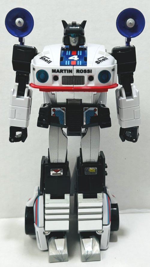 Robot Mode: Jazz looks great in robot mode. He’s got his missile launcher and gun, grappling hook, speakers, and two extra faces.