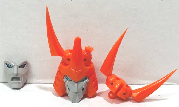 Cyclonus comes with a samurai head. Not sure why. It comes with two versions of his antennae, one broken, one not. Changing his head required taking out screws and I didn’t want to bother, but this is the head that goes with his samurai weapons.