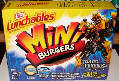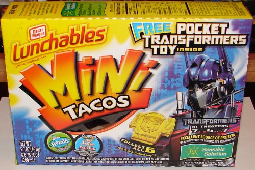 While I’m on the subject of Lunchables, there were six “transforming toys” available in Lunchables boxes. They are garbage.