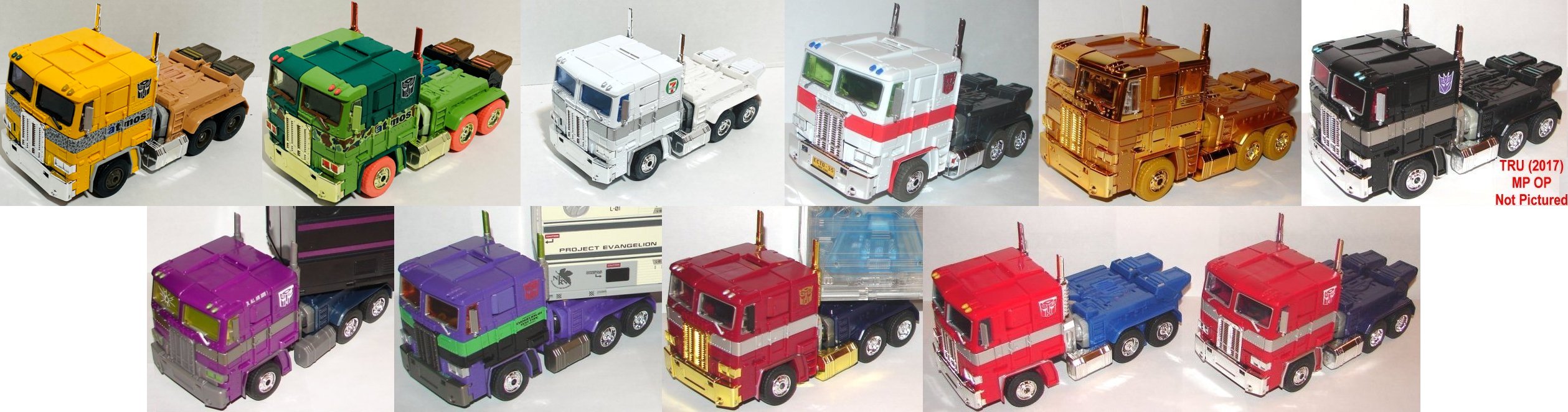 Previous Mold Reviews: Masterpiece Optimus Prime (MP-10), Toys R Us Exclusive (2012) Masterpiece Optimus Prime, Toys R Us Exclusive Year of the Horse Masterpiece Optimus Prime, Neon Genesis Evangelion Masterpiece Optimus Prime, Shattered Glass Masterpiece Optimus Prime, Toys R Us Exclusive (2017) Masterpiece Optimus Prime, Masterpiece Black Convoy, Masterpiece Golden Lagoon Optimus Prime, Ghostbusters 35th Anniversary San Diego Comic Con Exclusive Masterpiece Optimus Prime, Masterpiece 7-11 Optimus Prime