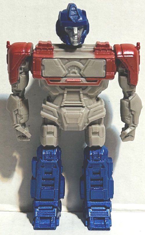 Optimus Prime does not transform, but you can rotate the piece in his chest to give him a cog and he had another head.