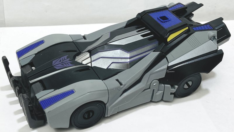 Vehicle Mode: Barricade is awesome. His car mode is really cool, I love the design. It looks like it would fit right in as a Batmobile. His colors are great.