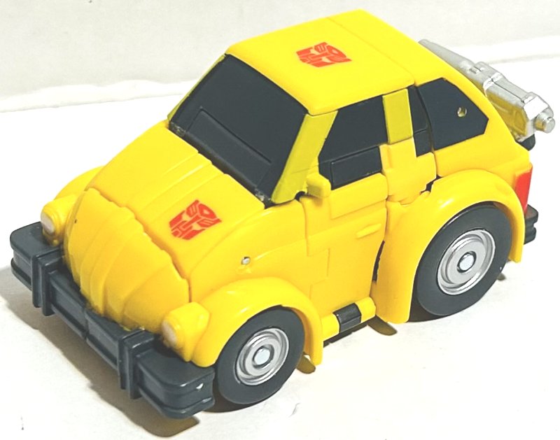 Vehicle Mode: Bumblebee looks awesome in vehicle mode. His windows are all painted, though I think at least some of them are black plastic rather than painted windows, but I’ll take it. Vehicle mode isn’t quite a VW Bug, but still looks great.