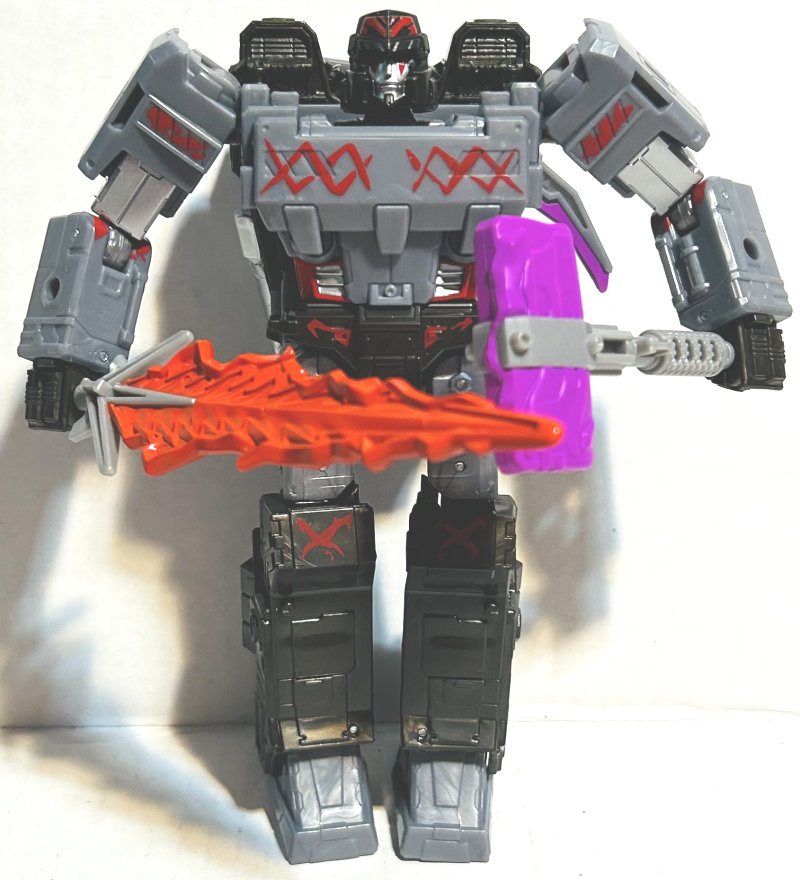 Miner Megatron is now repainted as another Miner Megatron. Will we ever be rid of IDW? He comes with a sword and hammer. I don’t know why.