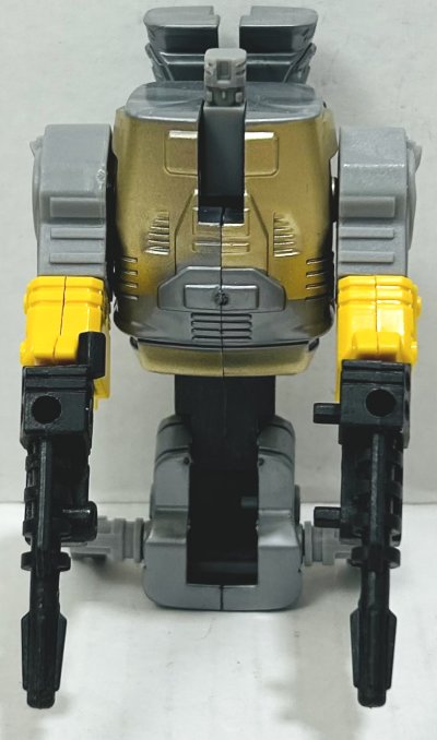 I imagine this is what Grimlock would looks like in dinosaur mode after a decade on meth. He is T-Rex shaped, but that head sculpt is weird. Robot mode isn’t great.