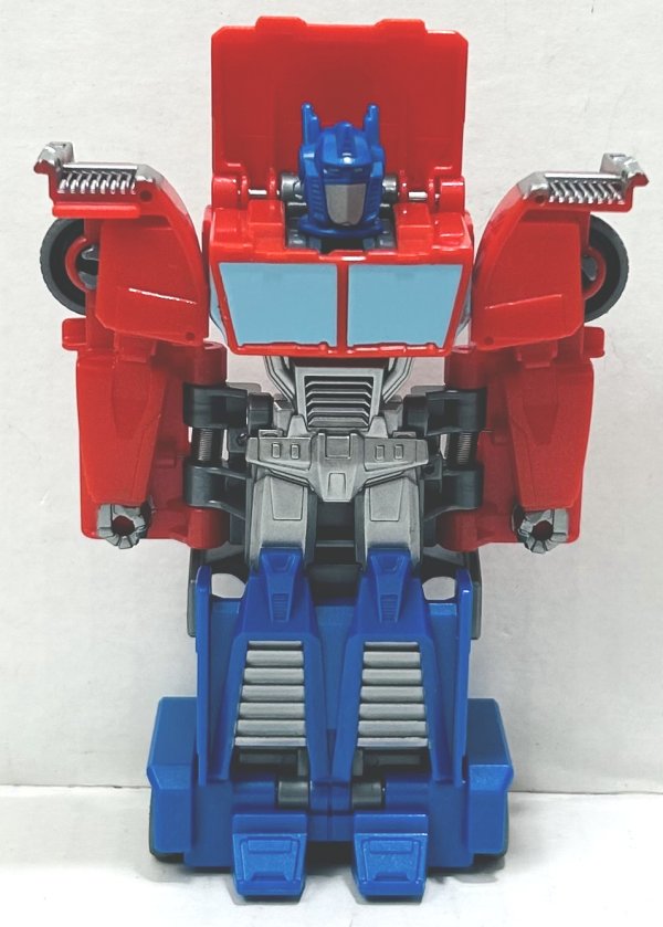 Optimus Prime is now a racing truck rather than his usual big rig alternate mode. He looks fine in both modes and like Bumblebee has a decent amount of paint apps for a 1-Step Changer.