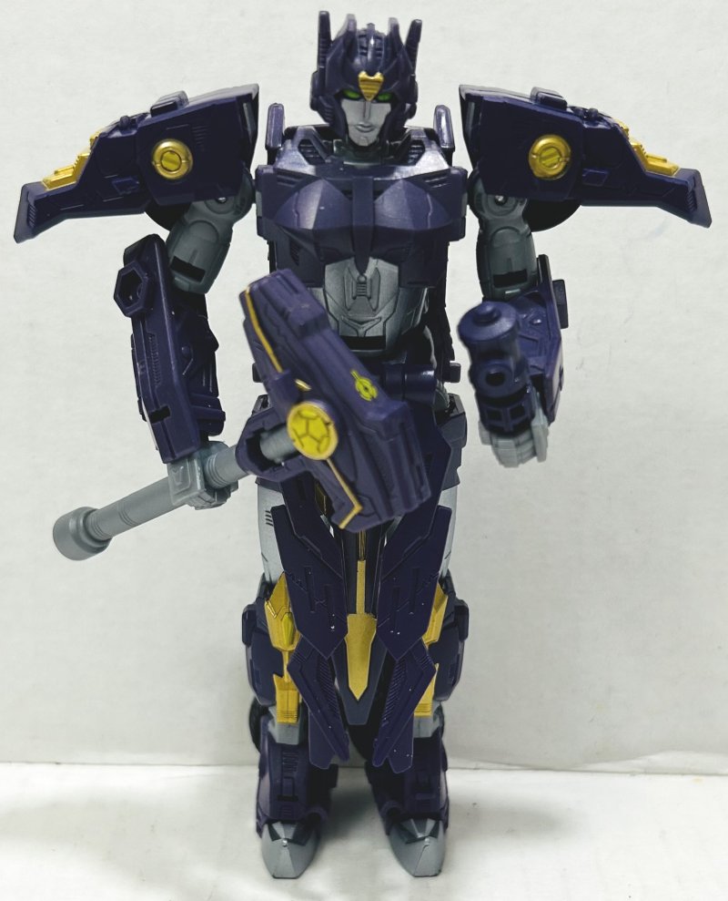 Vehicle Mode: I love the design of Solus Prime’s Cybertronian truck mode. She could have used some more paint apps. She’s very dark purple and a few more gold apps would have made her pop. Still, very cool in vehicle mode overall. I do have one design complain, the pegs that connect her front fenders to the body of the vehicle are not very solid. I’ve seen worse, but they don’t really want to stay in place very well.