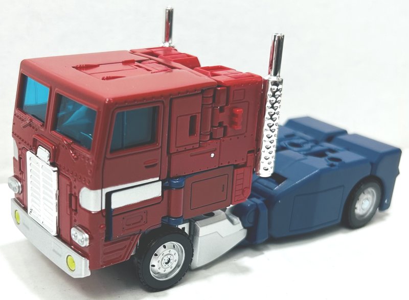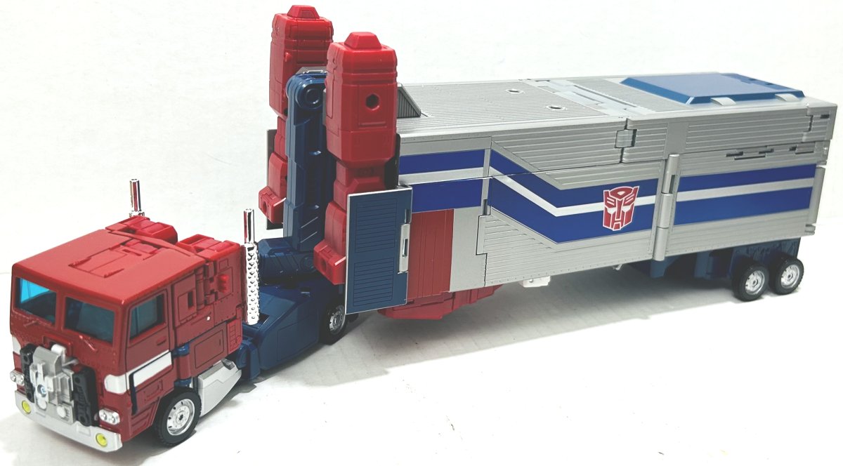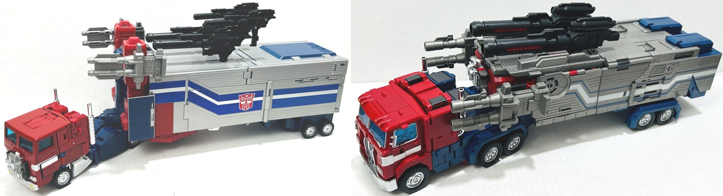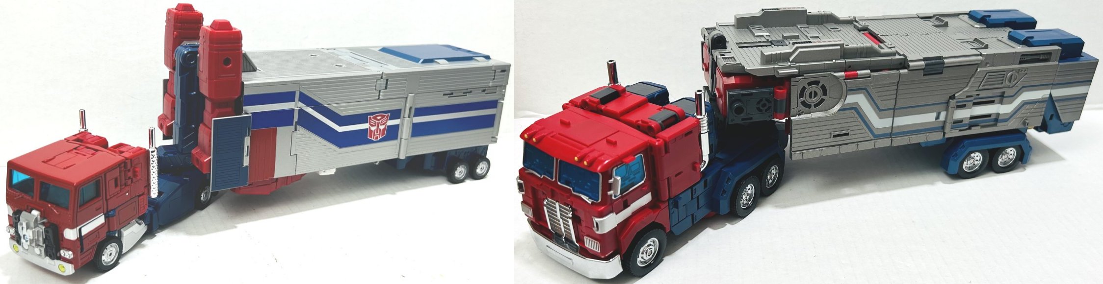 Vehicle Mode: In vehicle mode, the Masterpiece certainly looks more like the G1 toy. But I must admit I like the bigger guns of Power Baser. The original toy had his arms sticking up as the Masterpiece does. So while accurate, I prefer Power Baser folding them inside. Admittedly Power Baser’s trailer does look open and unfinished in the front, but it’s not terrible.