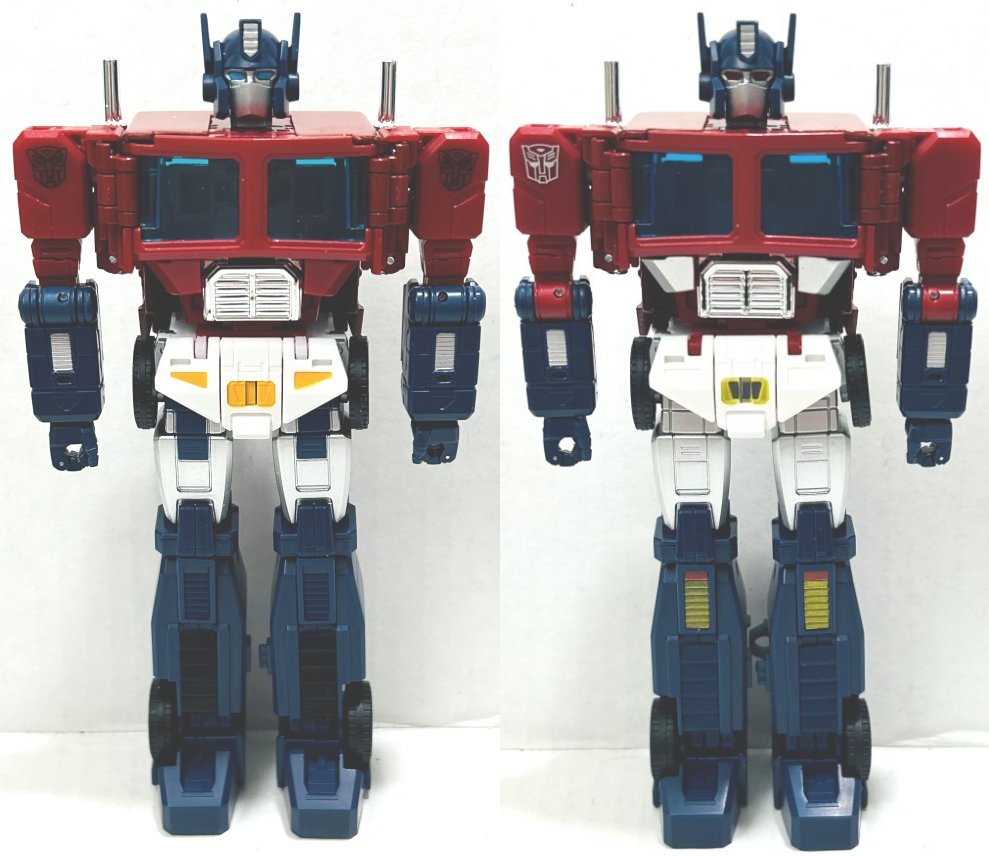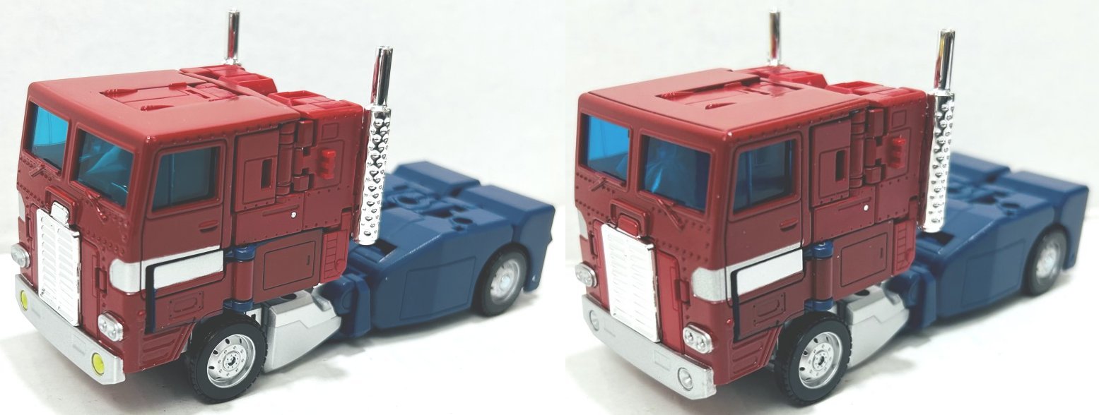 Vehicle Mode: In vehicle mode there is very little difference between the two versions of the cab. In robot mode you can see differences in eye color, his Autobot logo(s), and paint apps on his legs, thighs and waist.