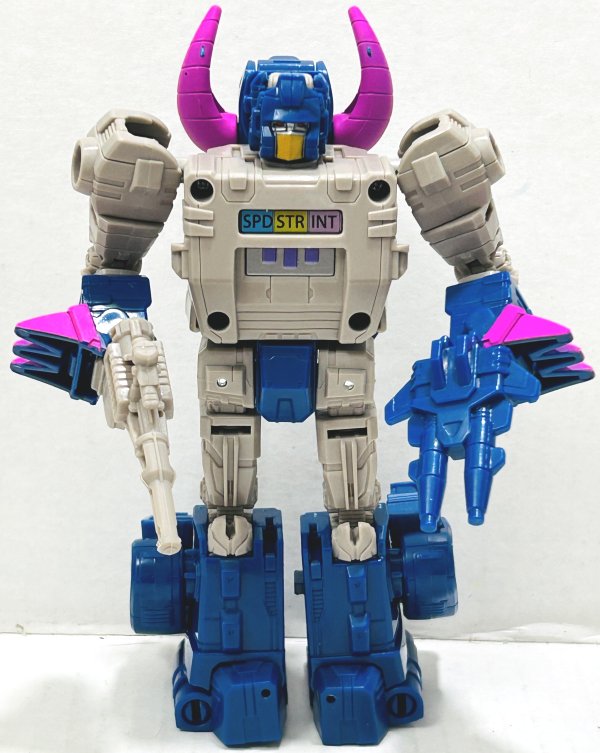 I really wanted to give Horri-Bull a glowing review, and in nearly all respects, he deserves one. He looks amazing, and I applaud Hasbro for continuing to get out new toys of these G1 characters. But here is my problem. His horns are blue plastic painted pink, which would be find, but they come on the sprue, which means he has these unpainted blue splotches on his horns. If they were not so visible in robot mode, I would probably not even care, but it really makes him look cheap. It’s a small thing, but it should have been done differently.