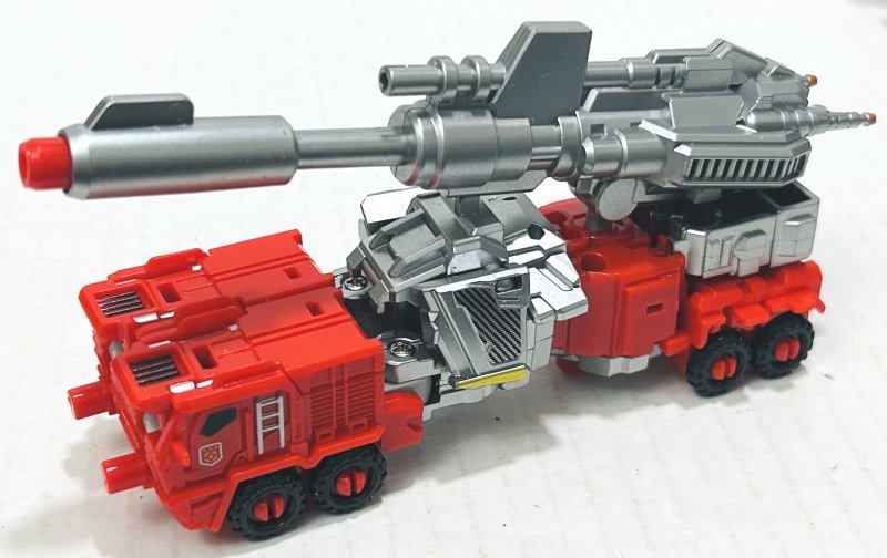 Onslaught’s vehicle mode front end and back end look great, but in the middle he’s just Bruticus parts. He doesn’t look bad, but little effort was made to make that look like part of a truck. His gun looks very cool. In robot mode his red and silver color scheme looks great, and I really like his head sculpt.