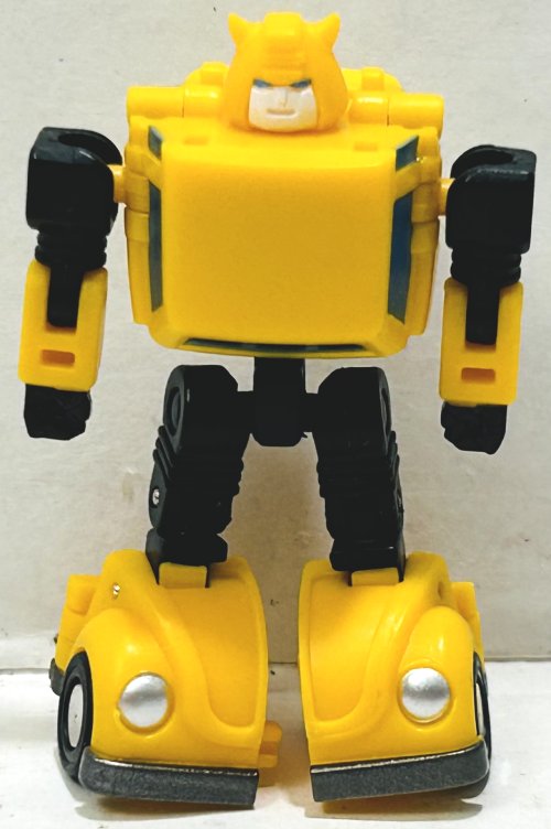 Bumblebee looks great in vehicle mode. He has great paint apps. In robot mode he mostly looks great. I don’t know why they didn’t give him some kind of crotch plate to cover the bar his legs are attached to which doesn’t look great at all.