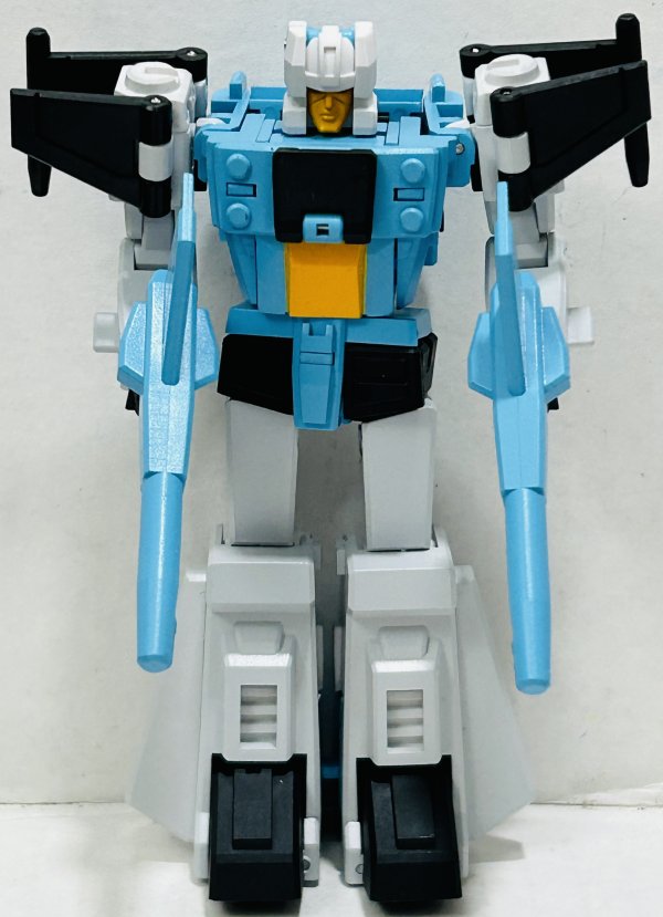 Brainstorm looks pretty good in vehicle mode, but he looks great in robot mode. This version is in the Japanese animation color scheme. I don’t know what the hell they were thinking with his name. Matthew Axelson?