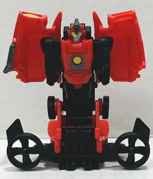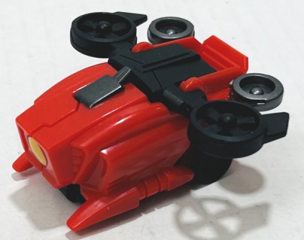 Tacticons are essentially transforming finger puppets. You read that right. Someone at Hasbro should be fired for green lighting these. You squeeze the back on the vehicle to make them transform, and it pushes your finger up behind their legs so they stick on your finger like a puppet. Small problem with that. As you can see on the package they transform backwards. Instead of having the front of the figure facing the same direction as your palm, it faces the opposite way. At least, to me that is backwards. The vehicle modes are kind of fun, but the robot modes suck.